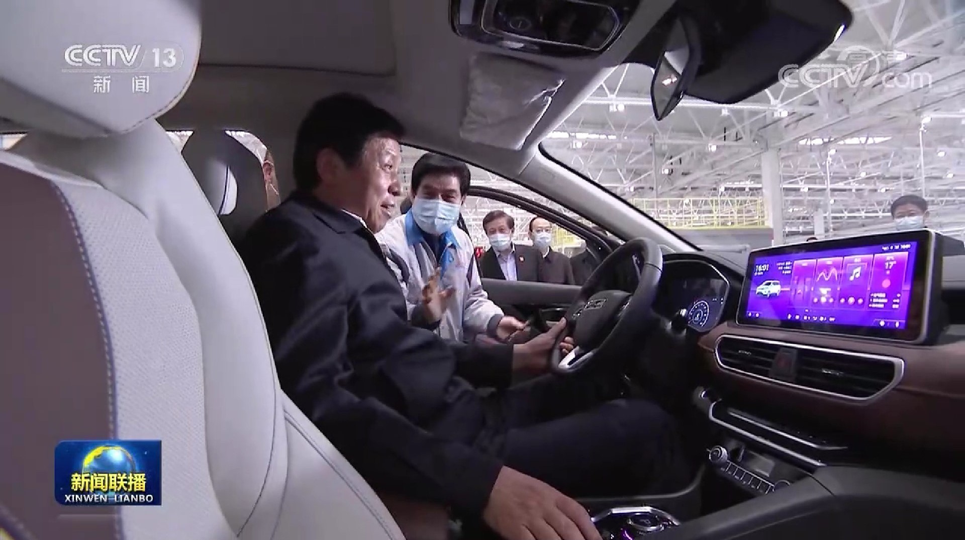 在新能源汽車產品展示區,栗戰書問道:“你們這車價位怎么樣?”遠勤山回答:“目前我們生產的是中檔車,20萬左右;正在開發中高檔車,30萬左右;還要開發更高檔的車,50萬左右。目前70度電的車能跑420多公里,90度電的車能跑550多公里。”聽完遠勤山的介紹,栗戰書饒有興趣地登上了這輛大運純電動MPV乘用車,在廠區試車跑道進行了試駕,親自體驗了車輛的各項性能。試駕結束后,他高興地對身邊的人說:“感覺舒適性很不錯,多年沒開車了,沒想到這個車這么好開。”