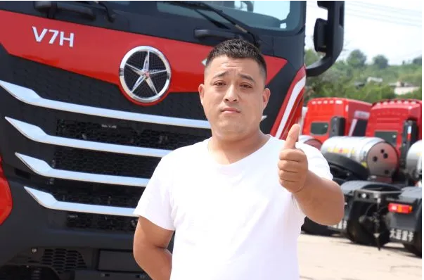 郝老板快人快語,性情中人。雖然之前沒有開過大運重卡,但是通過朋友介紹,再加上試乘試駕,他對大運V7H天然氣牽引車已經認可。“濰柴發動機、法士特變速箱,井陘這邊的大車(牽引車)基本都是這套配置,我以前開的車也一樣,只是現在換成了天然氣發動機,大家都知道濰柴天然氣發動機是行業里最成熟、最可靠、最先進的,肯定沒問題。”