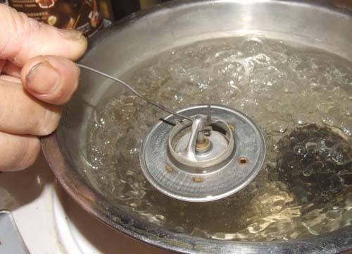 拆下節溫器查看,節溫器正常工作范圍在75℃以上,拆下這個節溫器放在熱水中,節溫器主閥無反應,因此斷定節溫器損壞。