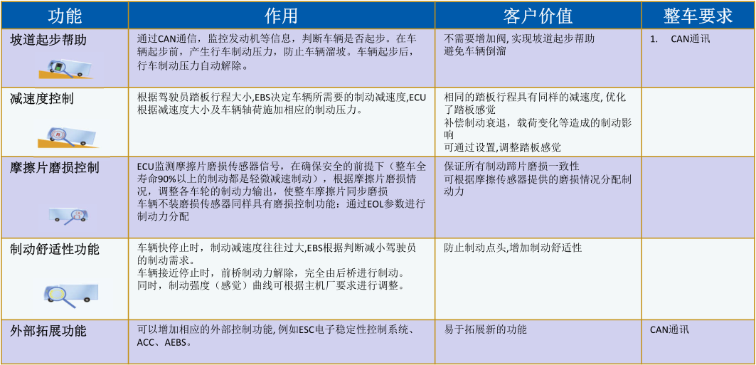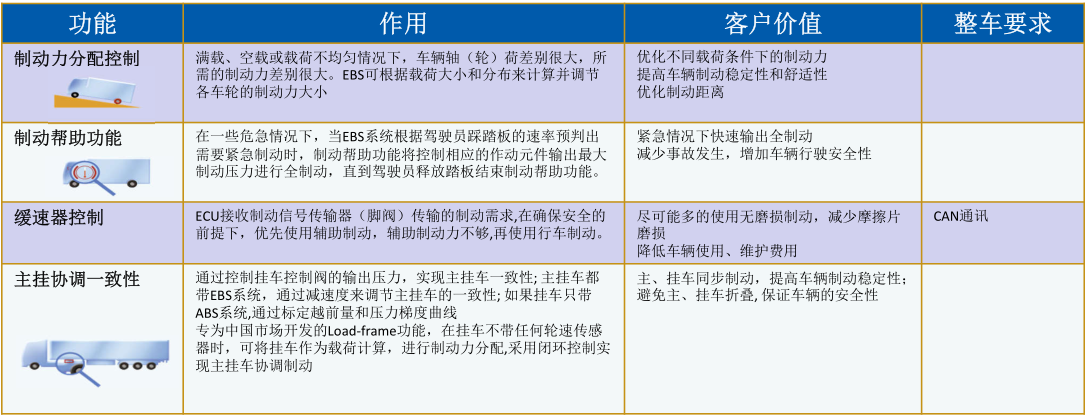 EBS除了具有ABS的功能外,還具有以下附加制動管理功能