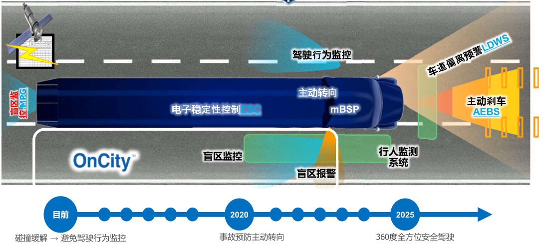 EBS又稱為電子制動控制系統,是一種電控系統,完全采用電控氣制動,提高制動舒適性和安全性。該系統在原有的防抱死控制(ABS)功能上增加了制動管理功能,且在EBS電控系統上可以拓展許多制動輔助系統,如ESC車身穩定性制動系統、ACC自適應巡航制動系統、CWS防碰撞預警制動系統和AEBS自動緊急制動系統。