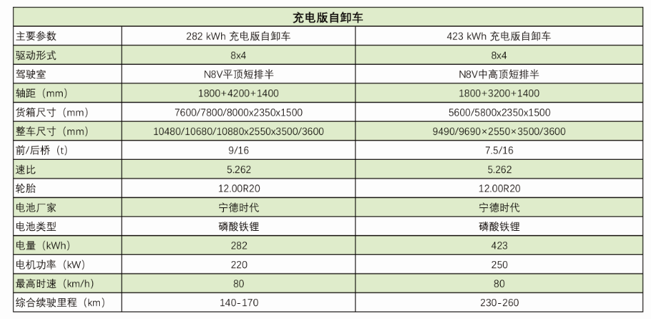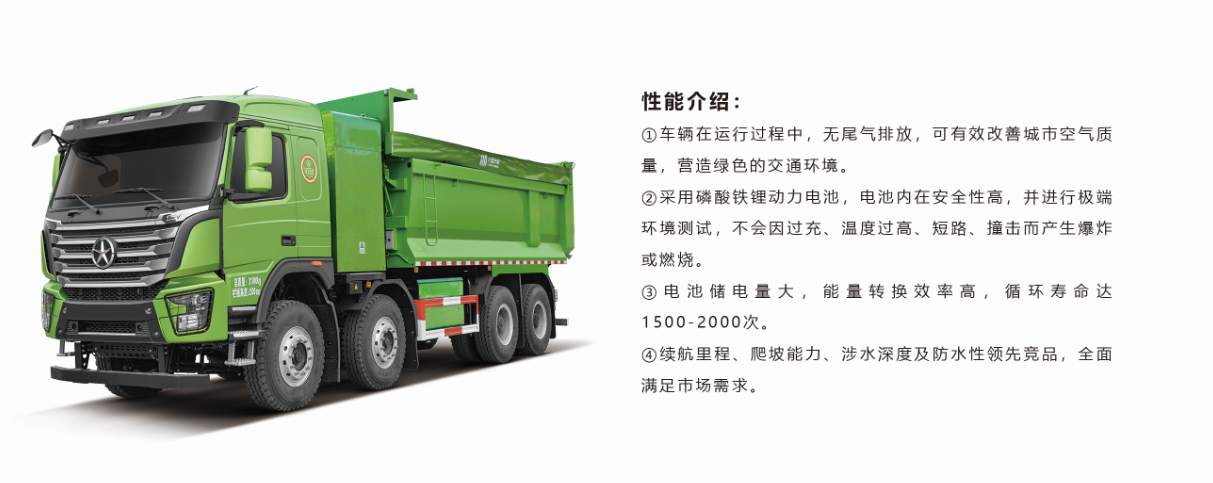 為積極響應國家新能源政策,滿足市場新能源產品需求,大運汽車以領先的技術優勢,傾力打造“充電版自卸車”,該車采用磷酸鐵鉀動力電池,起步扭矩大,驅動電機高效節能,續航里程長,廣泛適用于礦山、城建渣土等各類短途運輸。